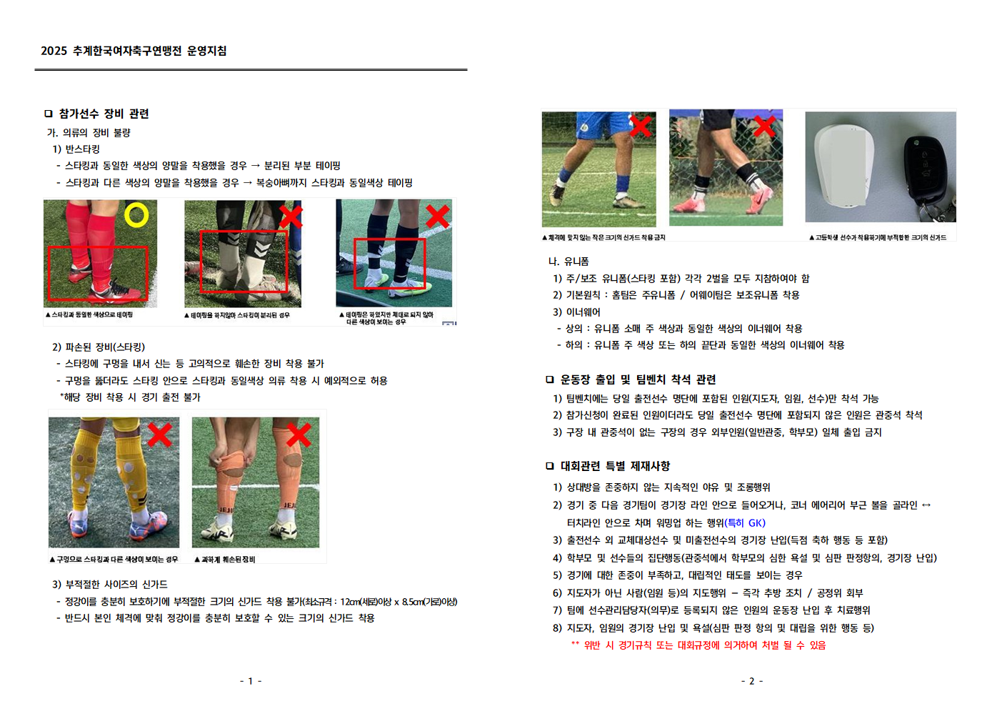 [연맹전] 2025 추계한국여자축구연맹전 운영지침 안내(선수 착용 장비 관련)
