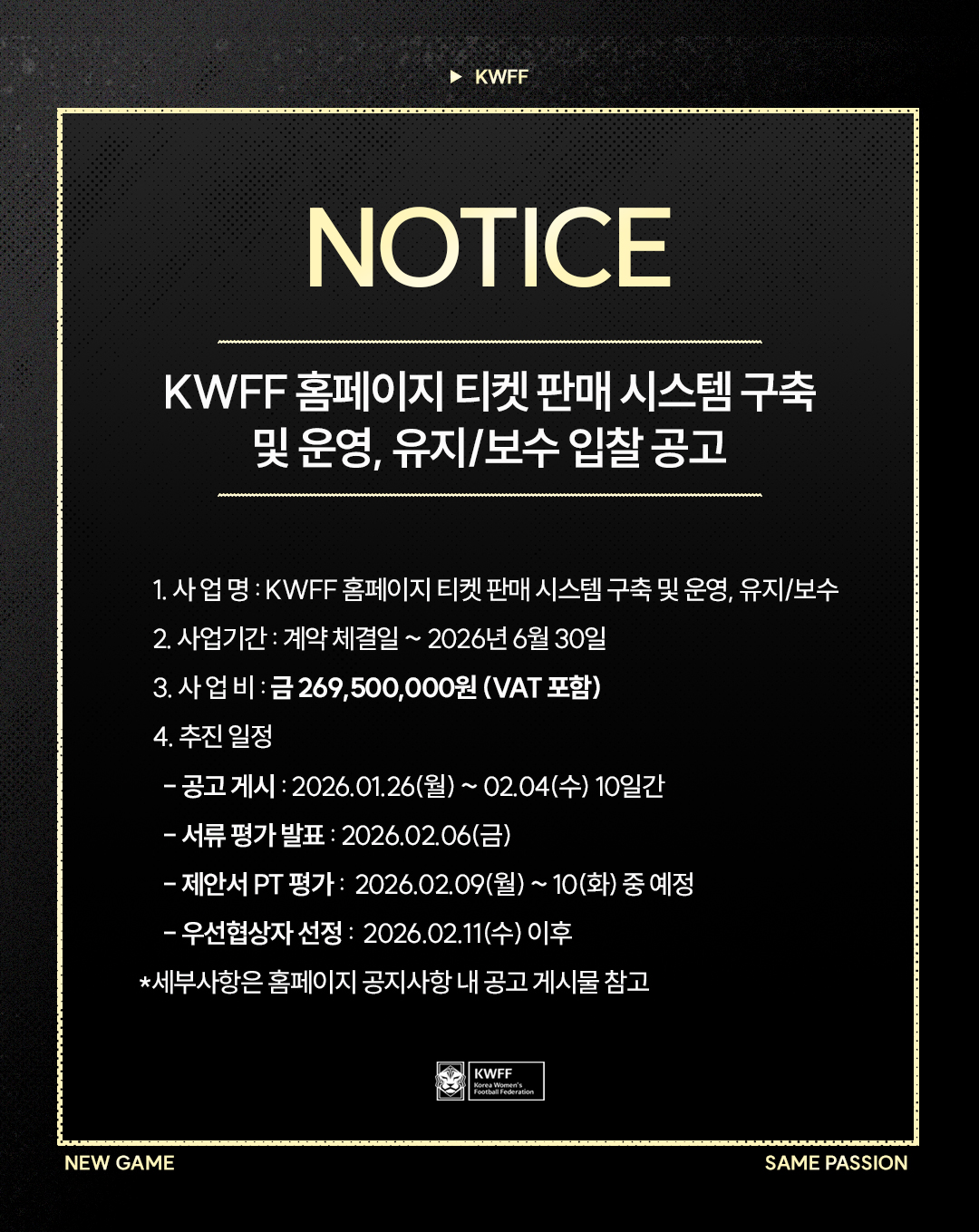 [KWFF] KWFF 홈페이지 티켓 판매 시스템 구축 및 운영, 유지 보수 입찰 공고